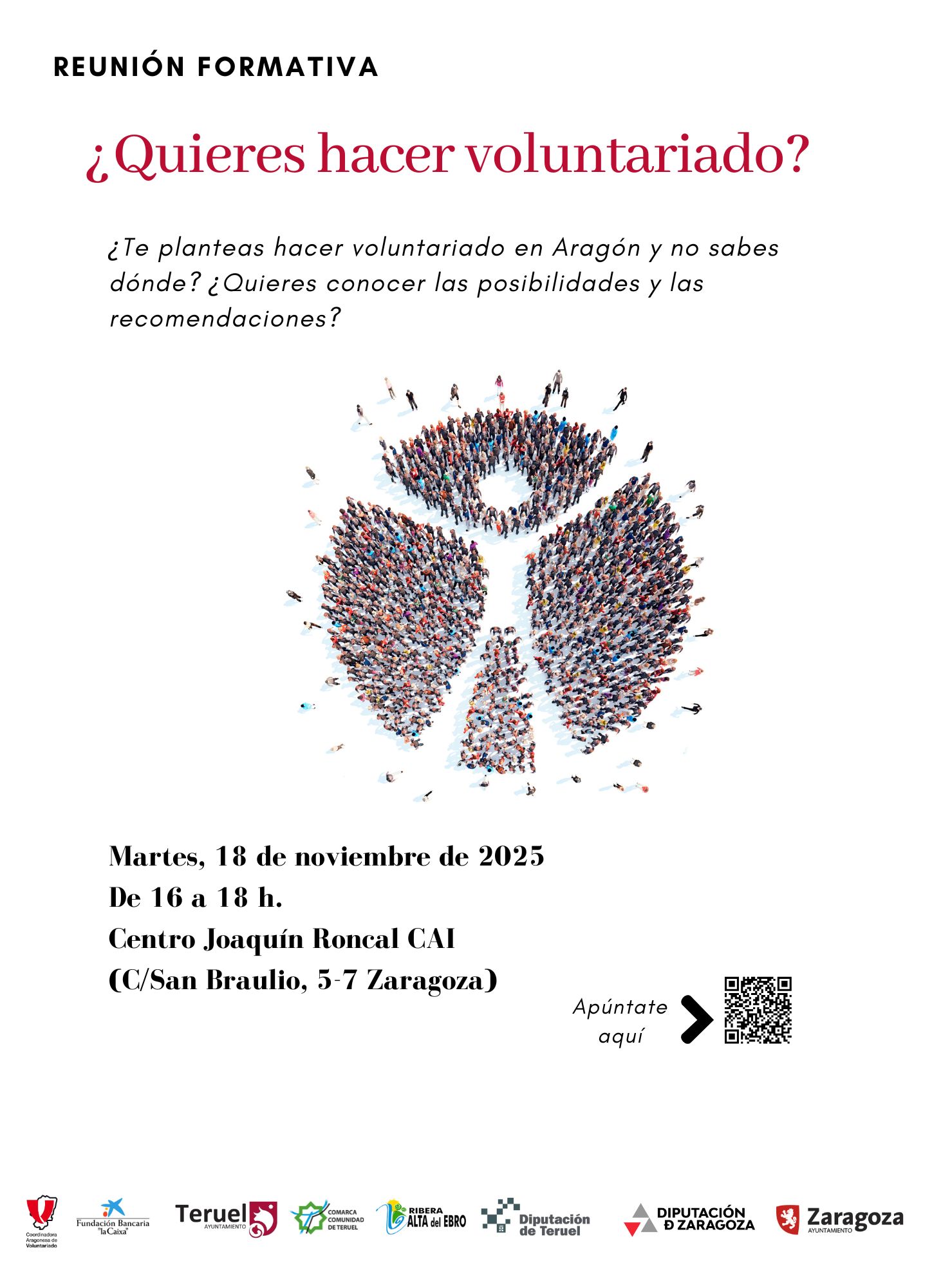 ¿Quieres saber como hacer voluntariado? En estas sesiones te informamos de qué es hacer voluntariado, los derechos y deberes de los voluntarios/as, las funciones del voluntario/a, competencias que puedes adquirir haciendo voluntariado y otras cuestiones de interés. El objetivo es que conozcas toda la información necesaria y ayudarte a encontrar el programa de voluntariado que mejor se adapte a tus preferencia y capacidades. Además, os damos ofertas de voluntariado actualizadas de las entidades de la Comunidad autónoma de Aragón y respondemos todas vuestras dudas.